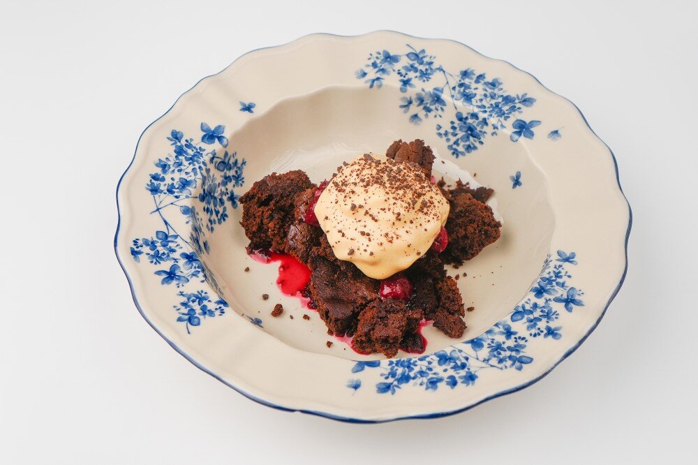 Сметанник с брауни и пряной вишней