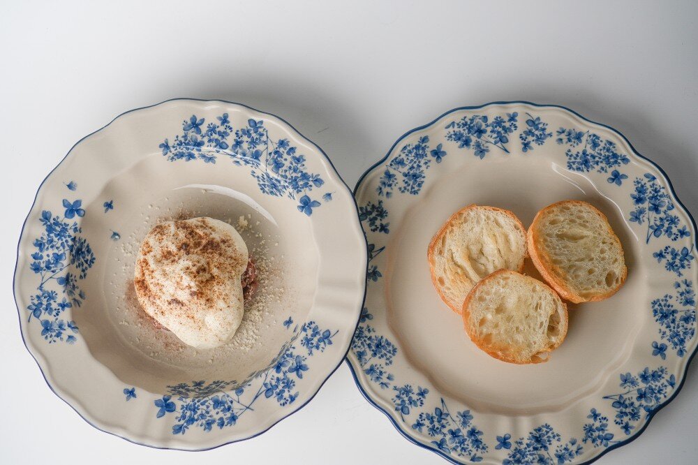 Тартар из говядины с муссом пармезан и трюфелем